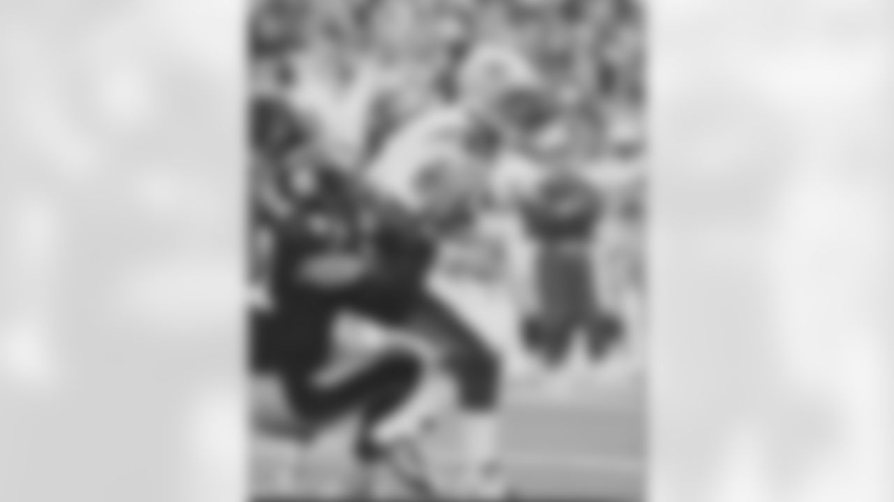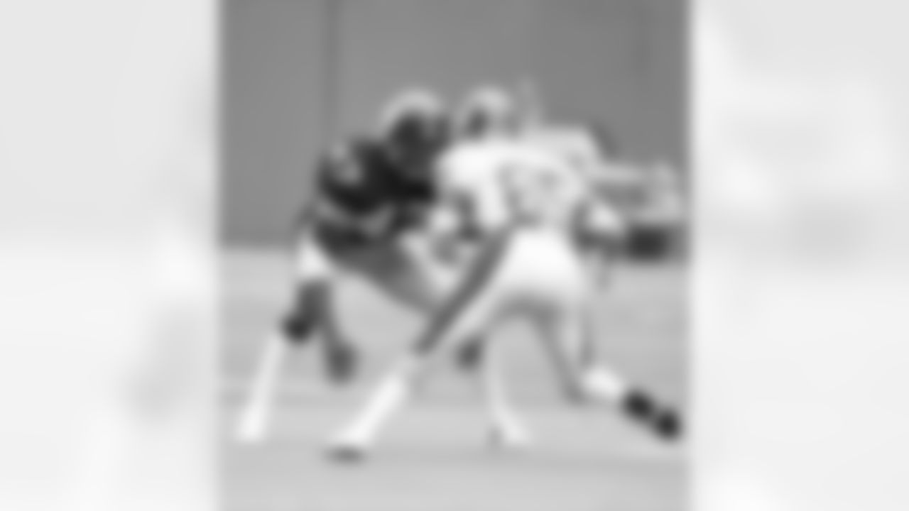 1982 MIKE MERRIWEATHER: By the time Merriweather was drafted from Pacific, the Steelers had switched to a 3-4 defense. After becoming a full-time starter in 1983, Merriweather then started 76 games through the 1987 season, during which he had 31 sacks, 11 interceptions, and nine fumble recoveries. He held out for the entire 1988 season and was then traded to Minnesota on the day of the 1989 NFL Draft.