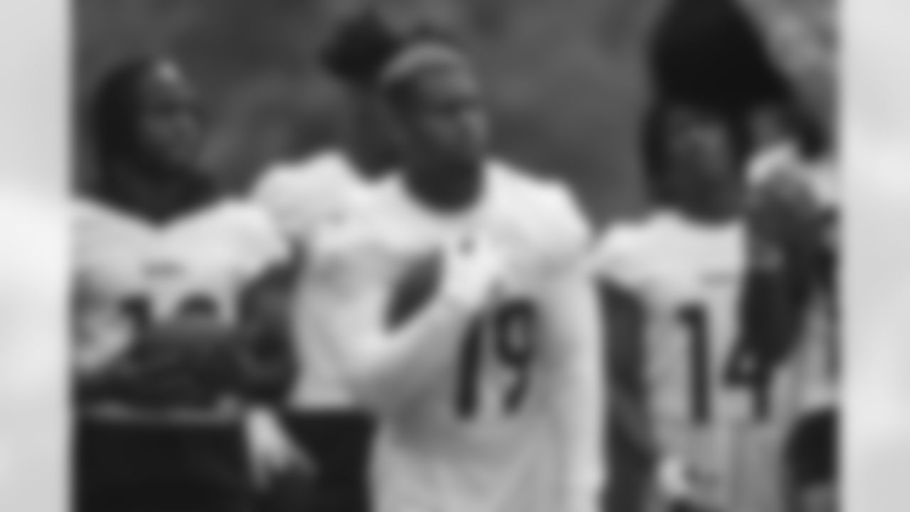 Pittsburgh Steelers wide receiver JuJu Smith-Schuster (19) trains at the UPMC Rooney Sports Complex during the 2021 Steelers Camp, Sunday, July 25, 2021 in Pittsburgh, PA. (Caitlyn Epes / Pittsburgh Steelers)