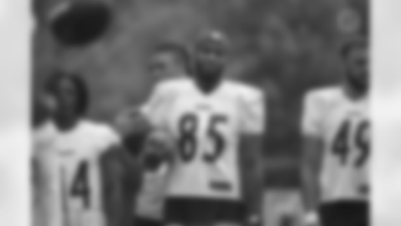 Pittsburgh Steelers tight end Eric Ebron (85) trains at the UPMC Rooney Sports Complex during the 2021 Steelers Camp, Sunday, July 25, 2021 in Pittsburgh, PA. (Caitlyn Epes / Pittsburgh Steelers)
