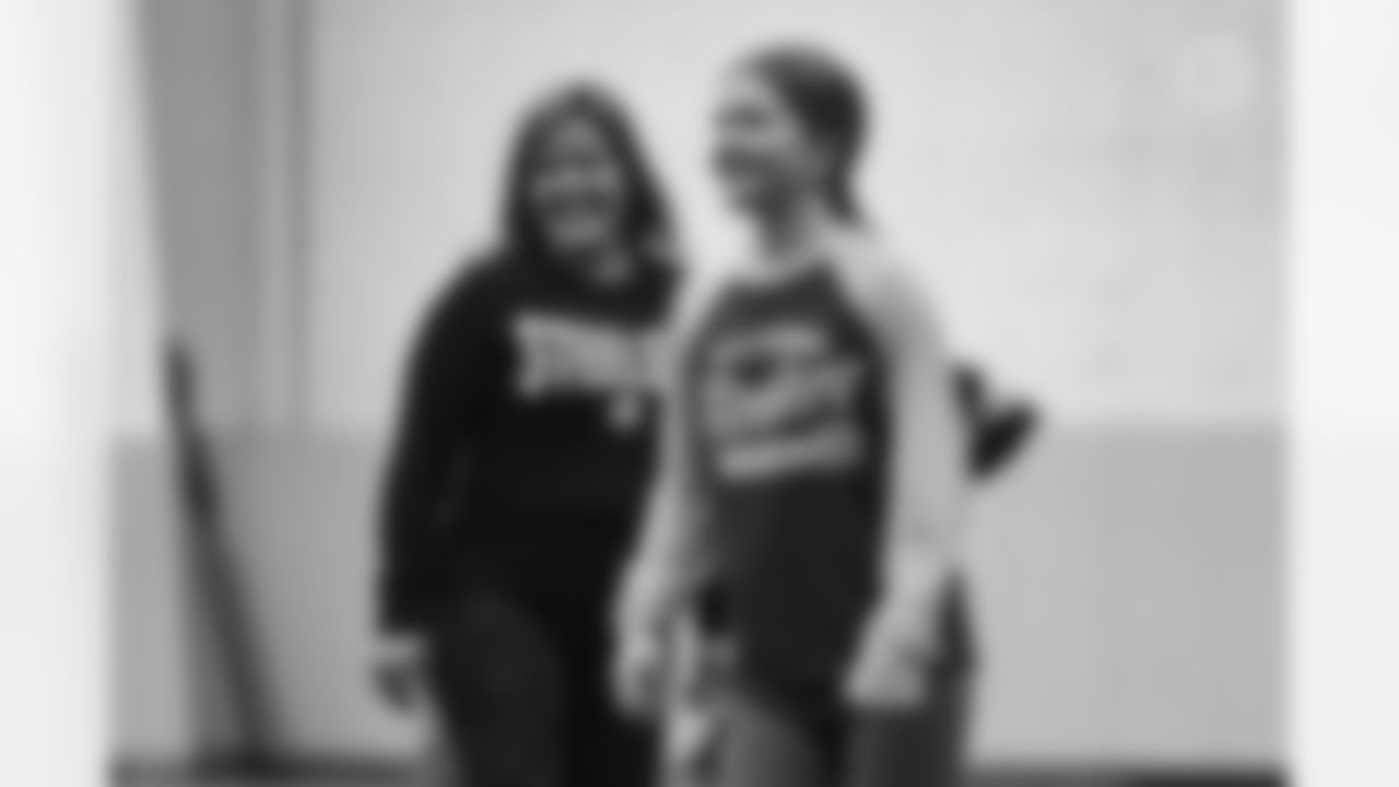 Senior defensive assistant/linebackers coach Brian Flores taught the ladies the X's and O's in the team meeting room, sharing the intricacies of the of the game with them.