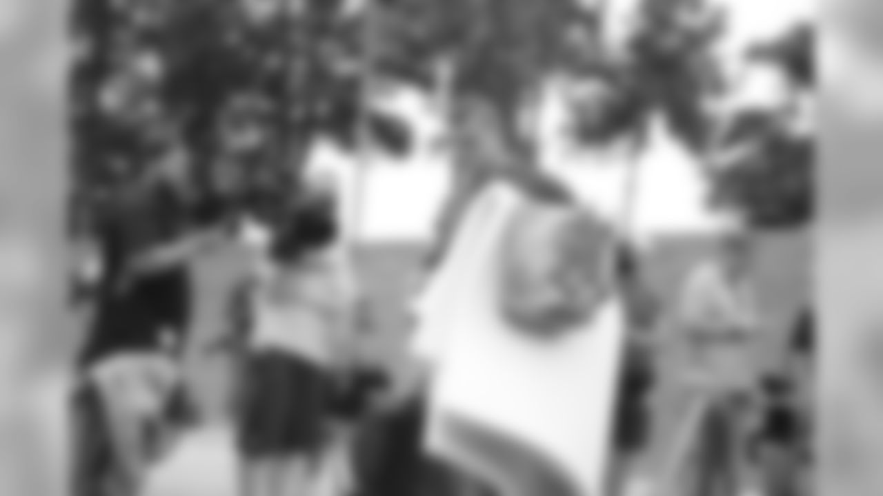 Pittsburgh Steelers players practice at Saint Vincent College during the 2018 Steelers training camp.
