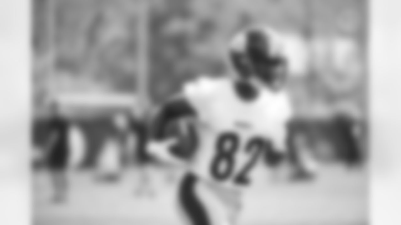 Pittsburgh Steelers tight end Kevin Rader (87) during practice at the UPMC Rooney Sports Complex preparing for a Week 1 matchup against the Buffalo Bills, Monday, Sept. 6, 2021 in Pittsburgh, PA. (Karl Roser / Pittsburgh Steelers)