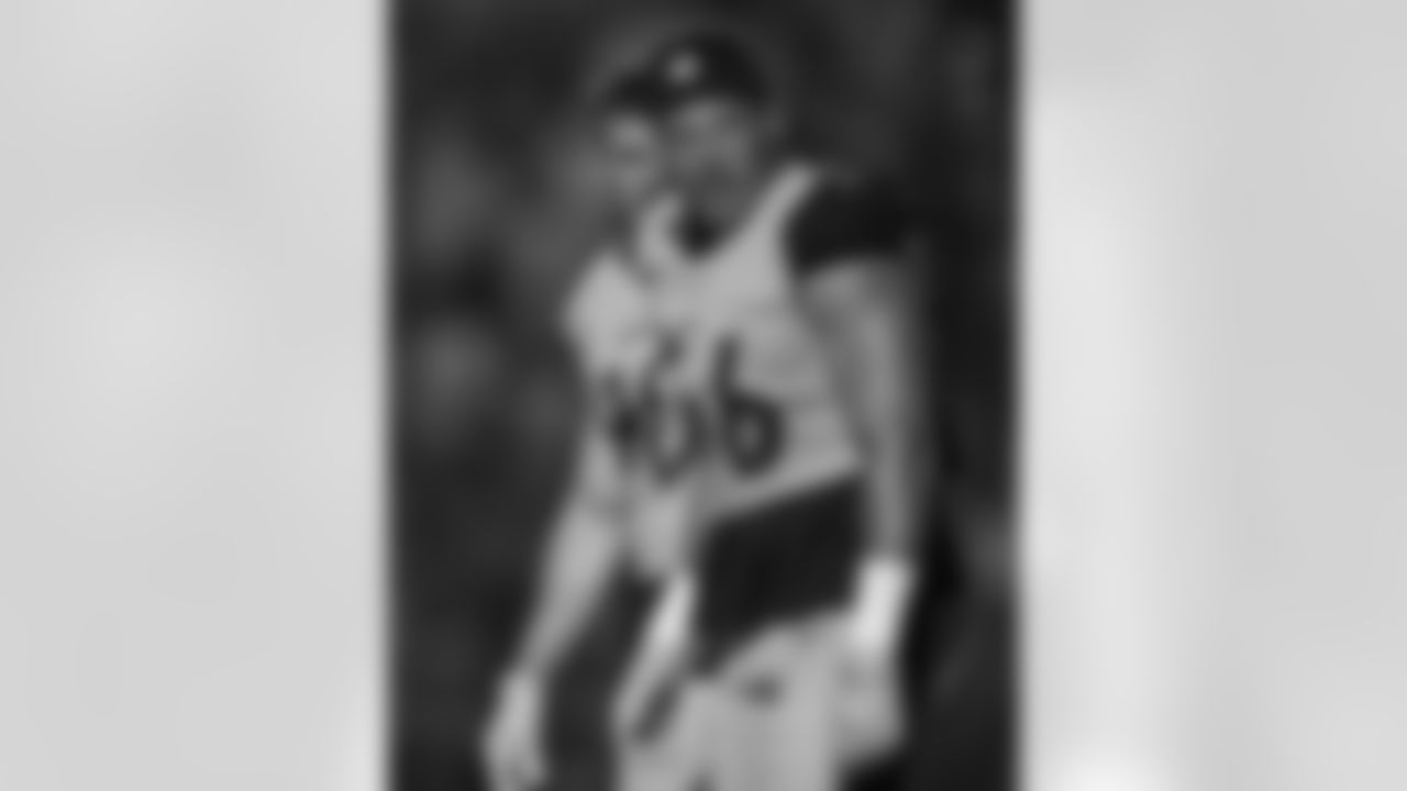 The Pittsburgh Steelers linebackers with legend Ryan Shazier at Saint Vincent College during the 2023 Steelers Training Camp on Thursday, Aug. 3, 2023 in Latrobe, PA. (Karl Roser / Pittsburgh Steelers)