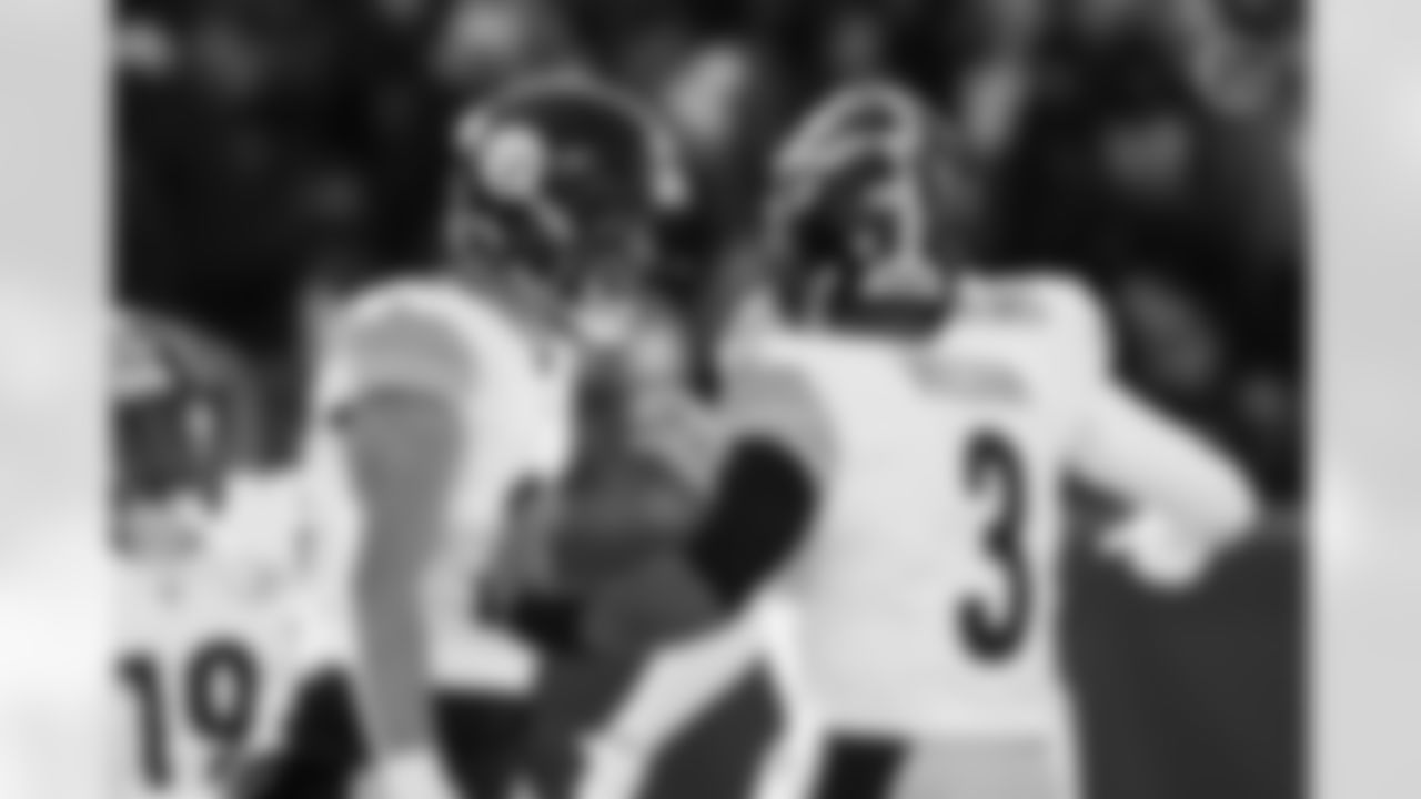 Pittsburgh Steelers punter Corliss Waitman (8) and Pittsburgh Steelers kicker Chris Boswell (9) during a regular season game between the Pittsburgh Steelers and the Cincinnati Bengals, Sunday, Dec. 1, 2024 in Cincinnati, OH. (Karl Roser / Pittsburgh Steelers)