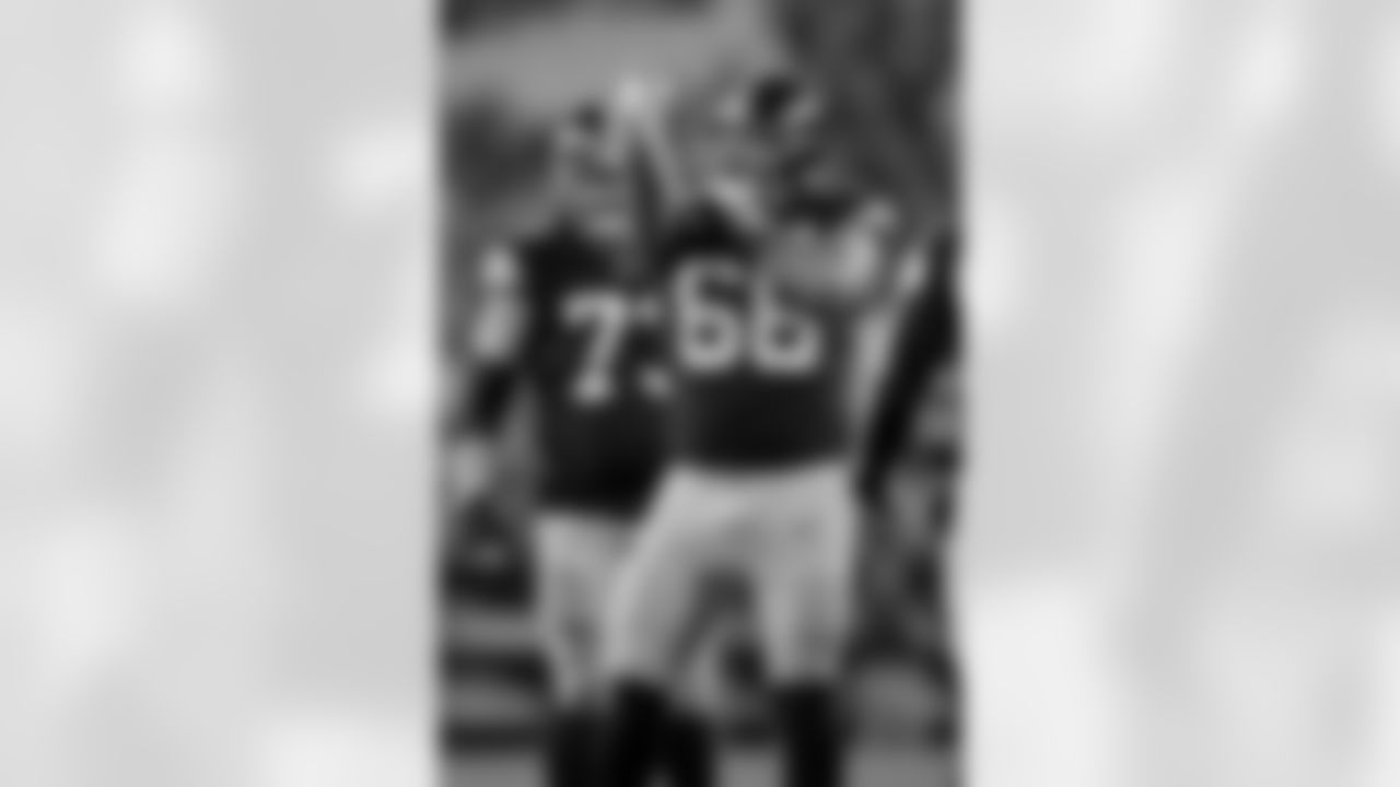 Pittsburgh Steelers linebacker Nick Herbig (51) and Pittsburgh Steelers linebacker T.J. Watt (90) during a regular season game between the Pittsburgh Steelers and the Los Angeles Chargers, Sunday, Sept. 22, 2024 in Pittsburgh, PA. The Steelers defeated the Chargers 20-10. (Arron Anastasia / Pittsburgh Steelers)