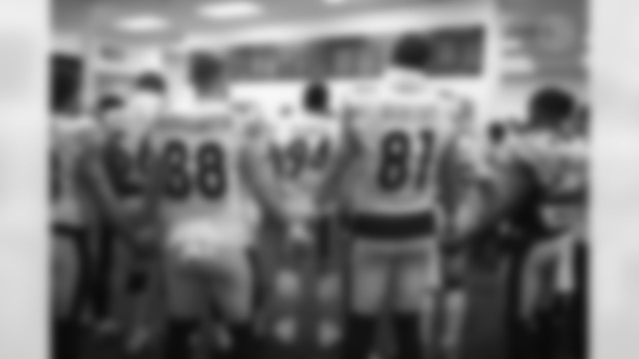 Pittsburgh Steelers linebacker T.J. Watt (90) and the linebackers huddle during a regular season game between the Pittsburgh Steelers and the Baltimore Ravens, Sunday, Jan. 1, 2023 in Baltimore, MD. (Abigail Dean / Pittsburgh Steelers)