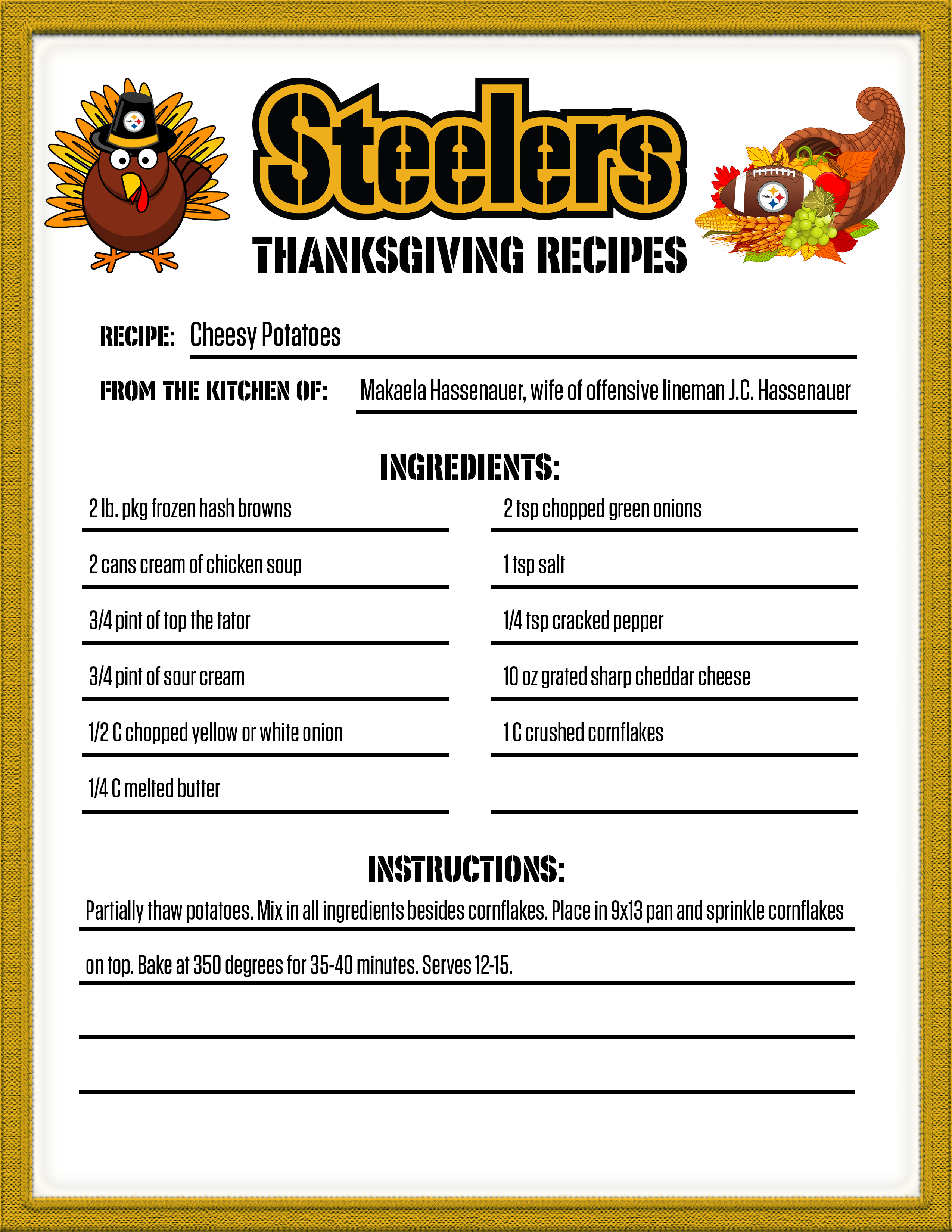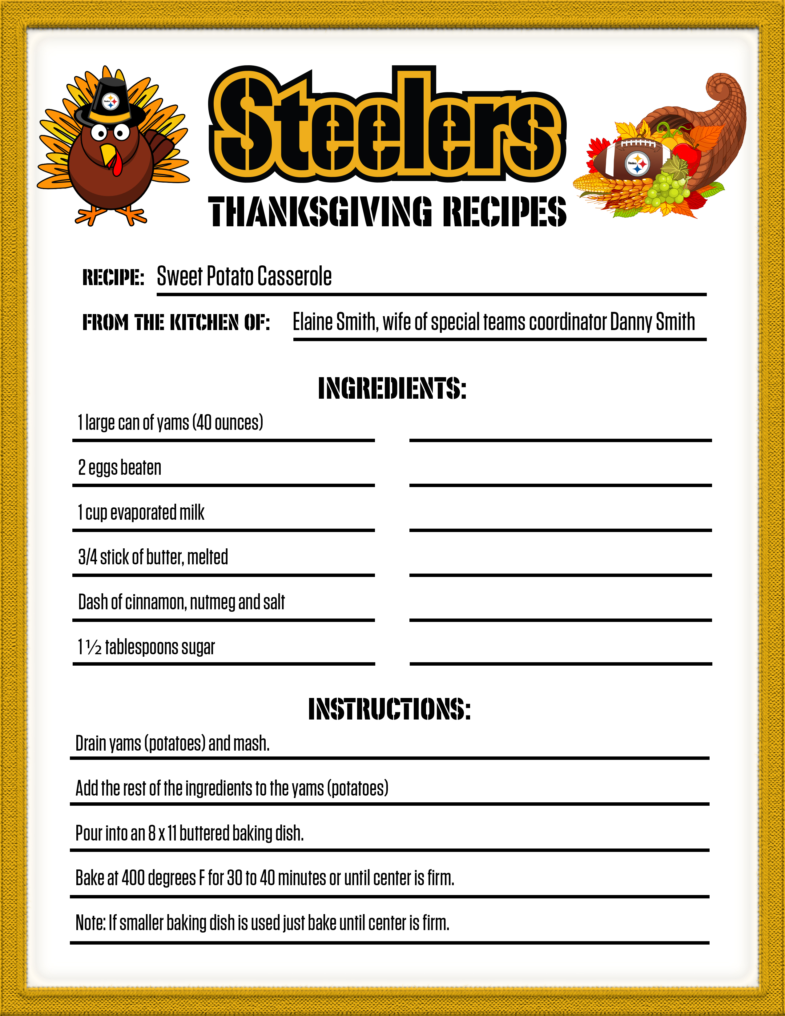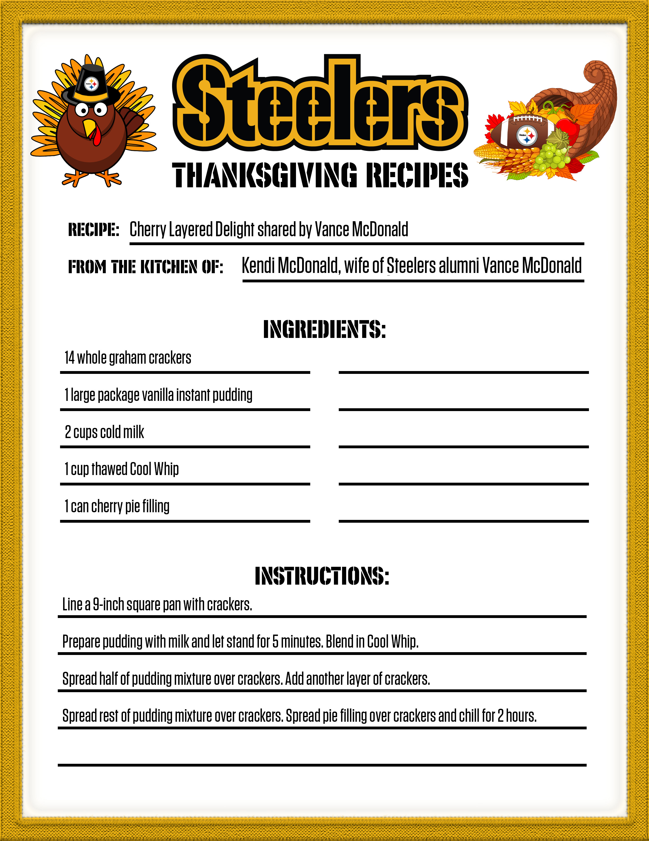 If you are looking for something new for your Thanksgiving dinner, check out one of the recipes from the Steelers' family.