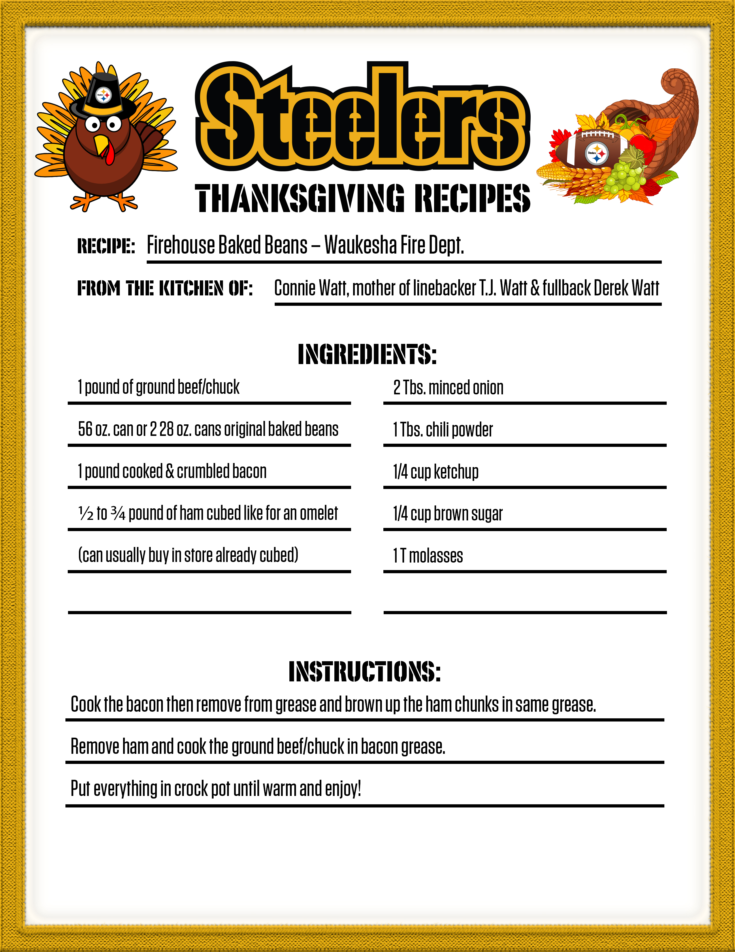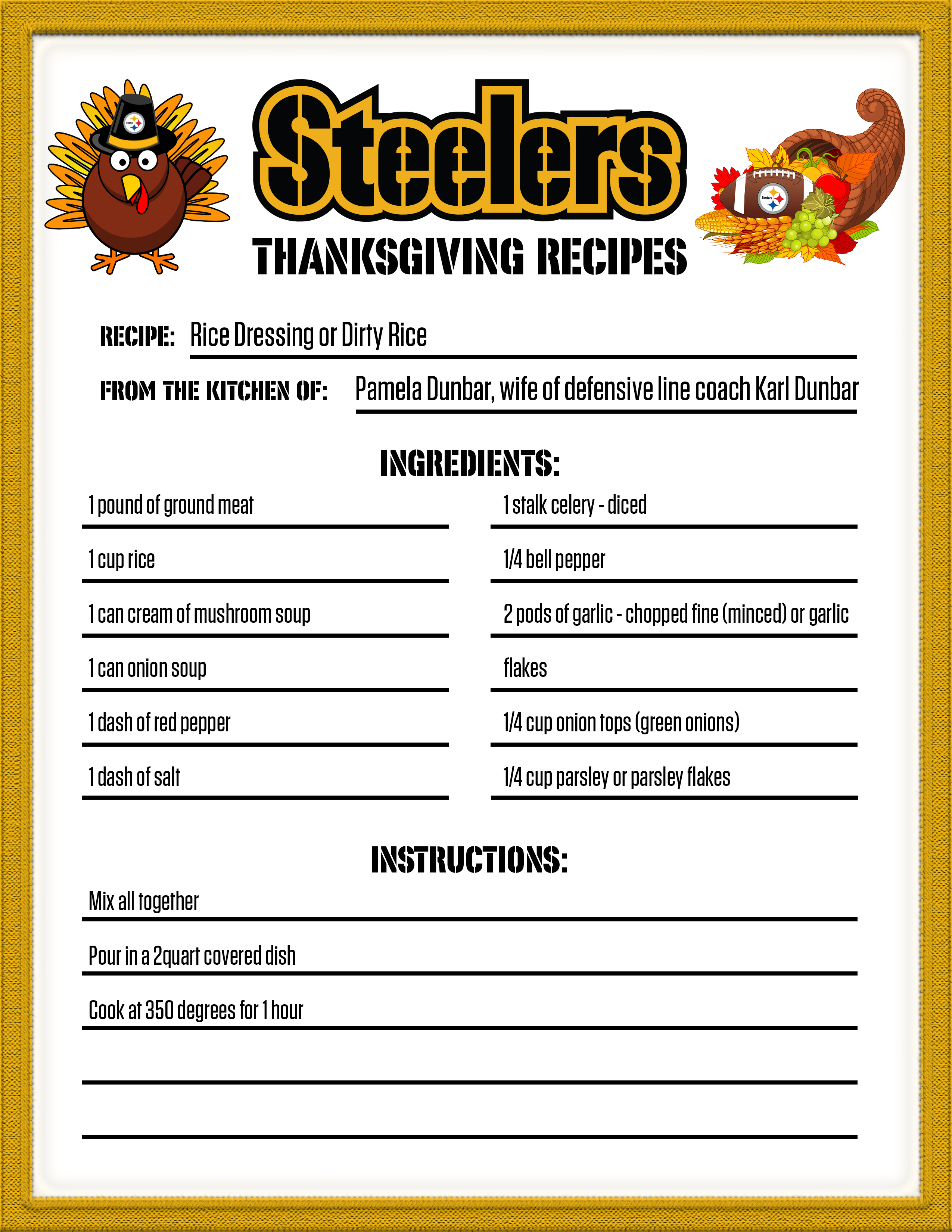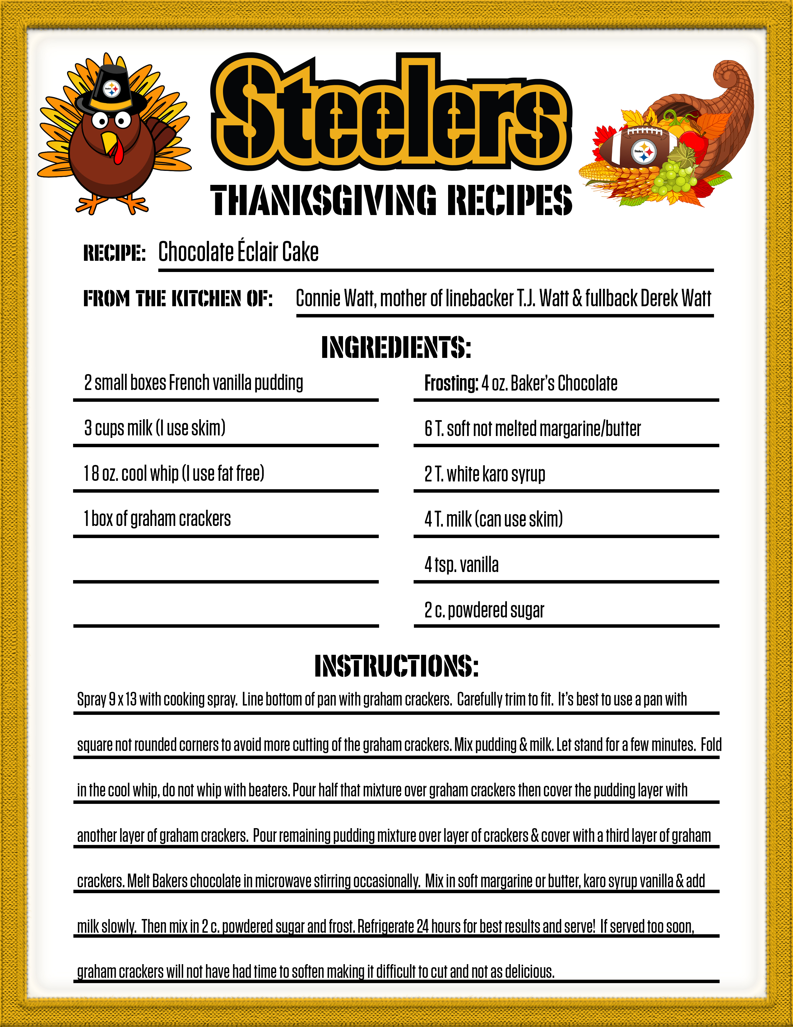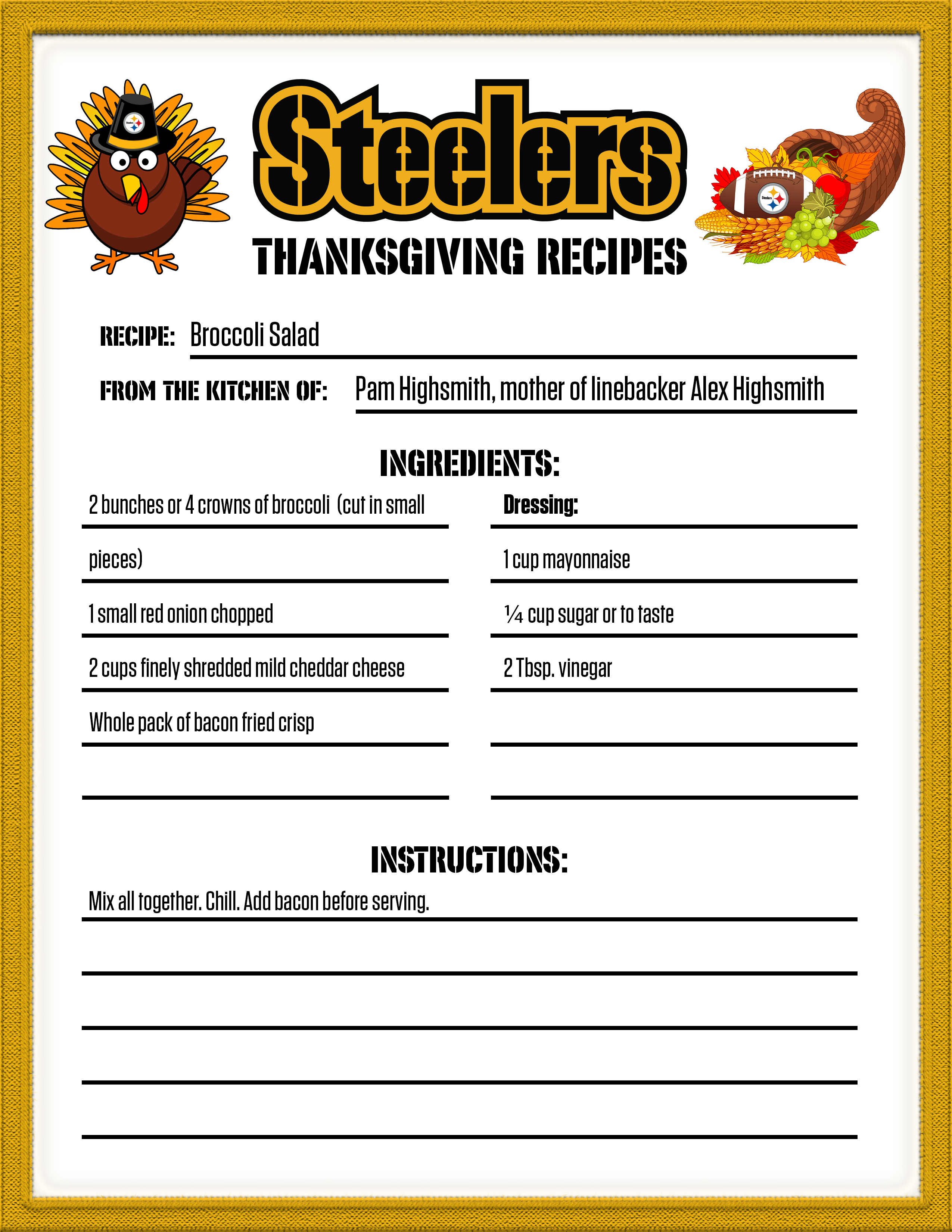 If you are looking for something new for your Thanksgiving dinner, check out one of the recipes from the Steelers' family.