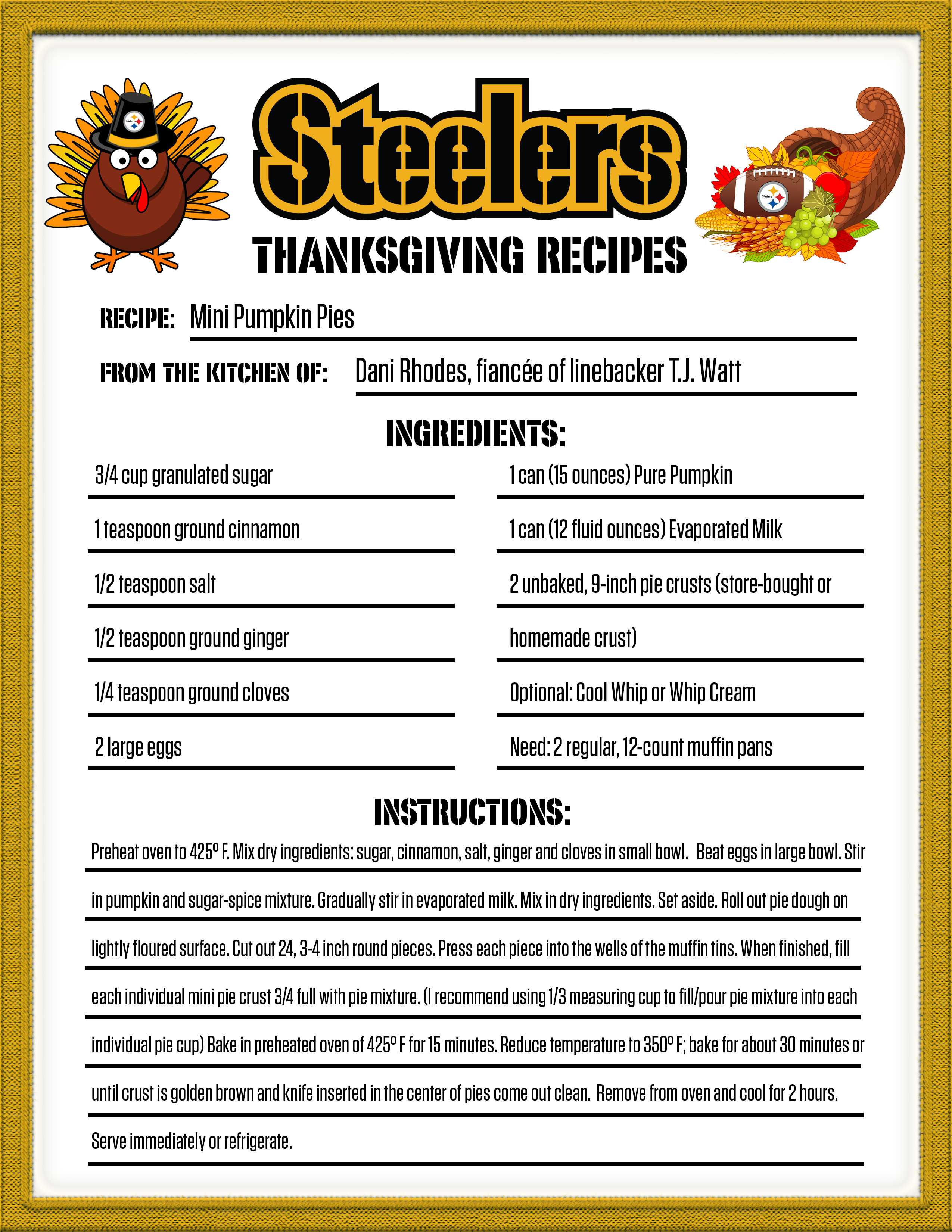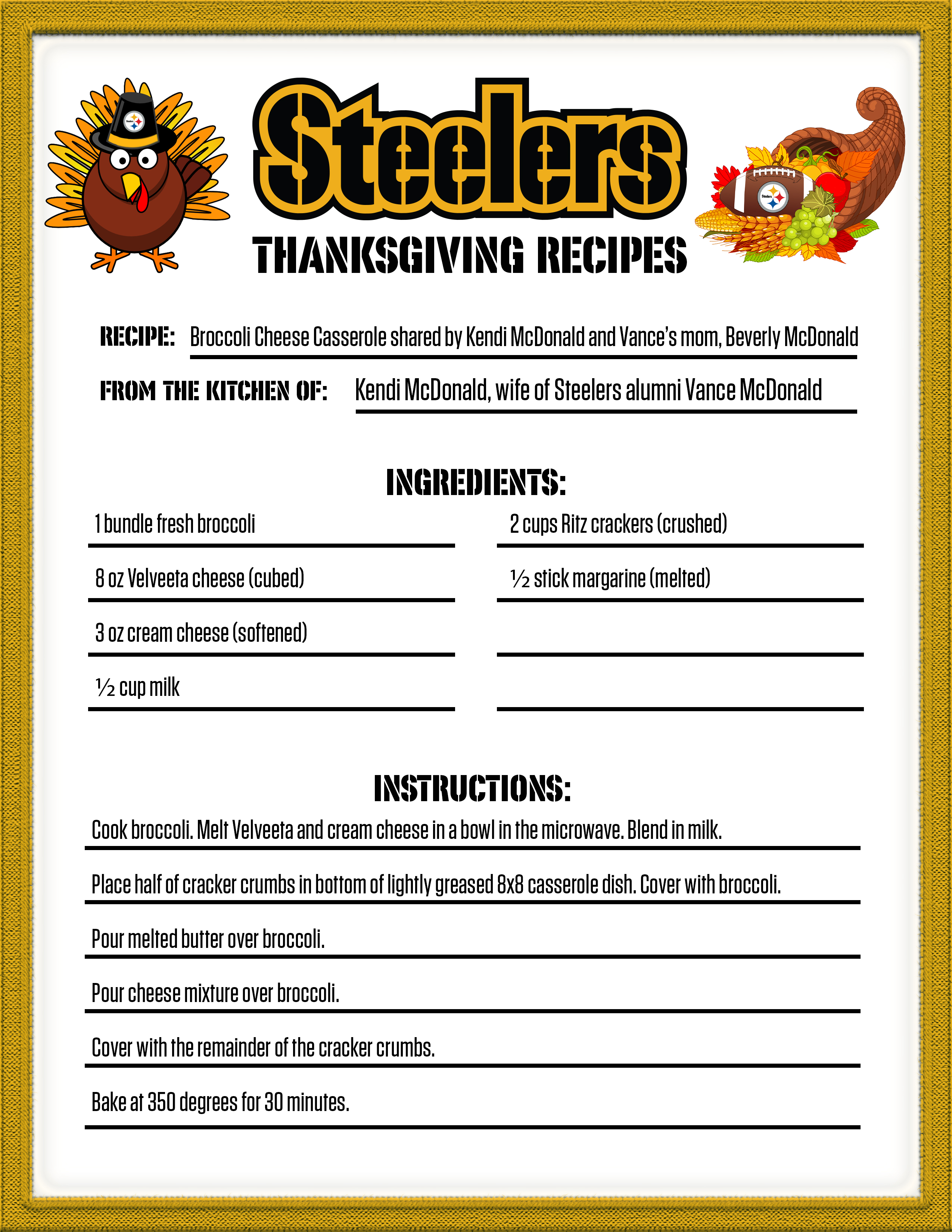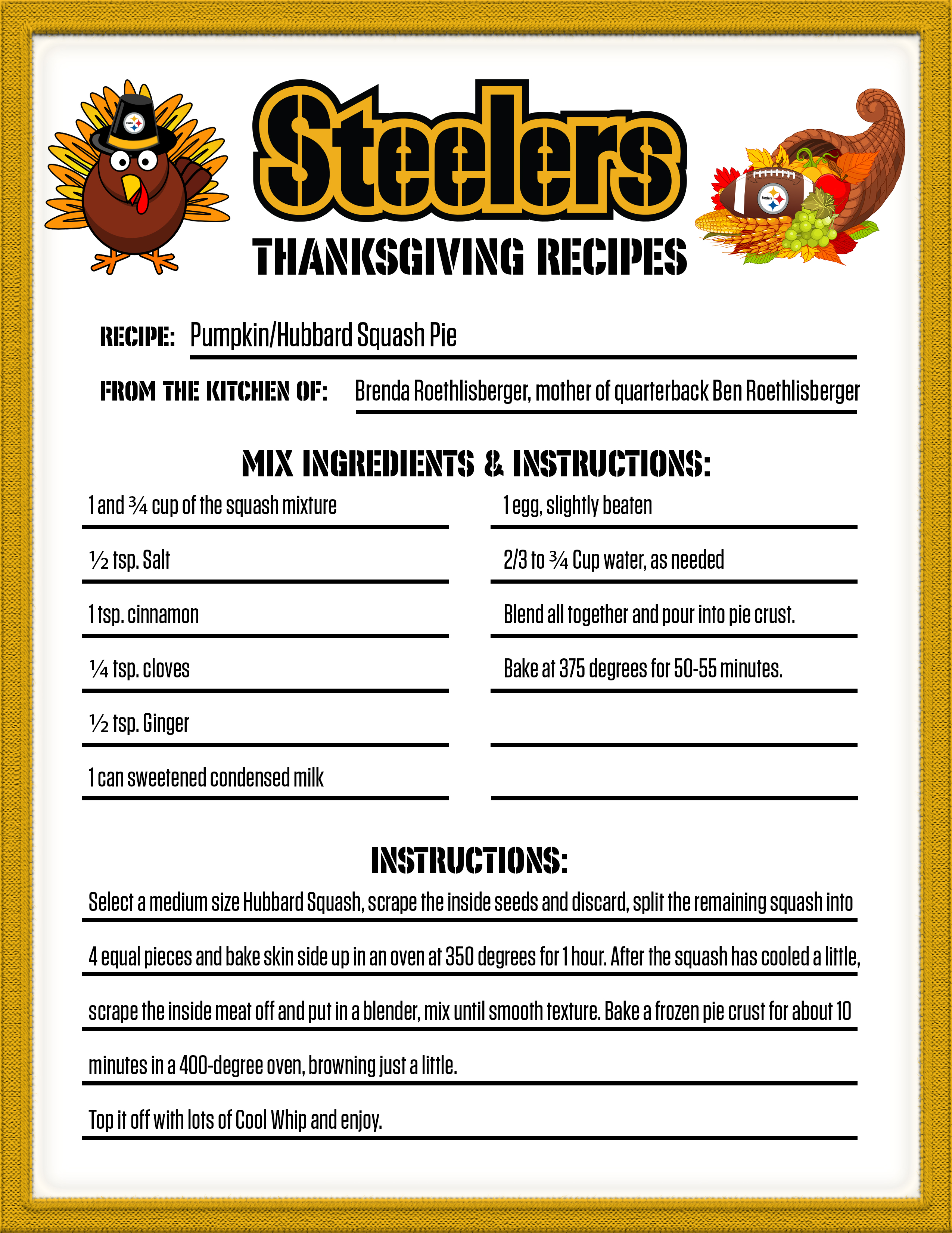 If you are looking for something new for your Thanksgiving dinner, check out one of the recipes from the Steelers' family.
