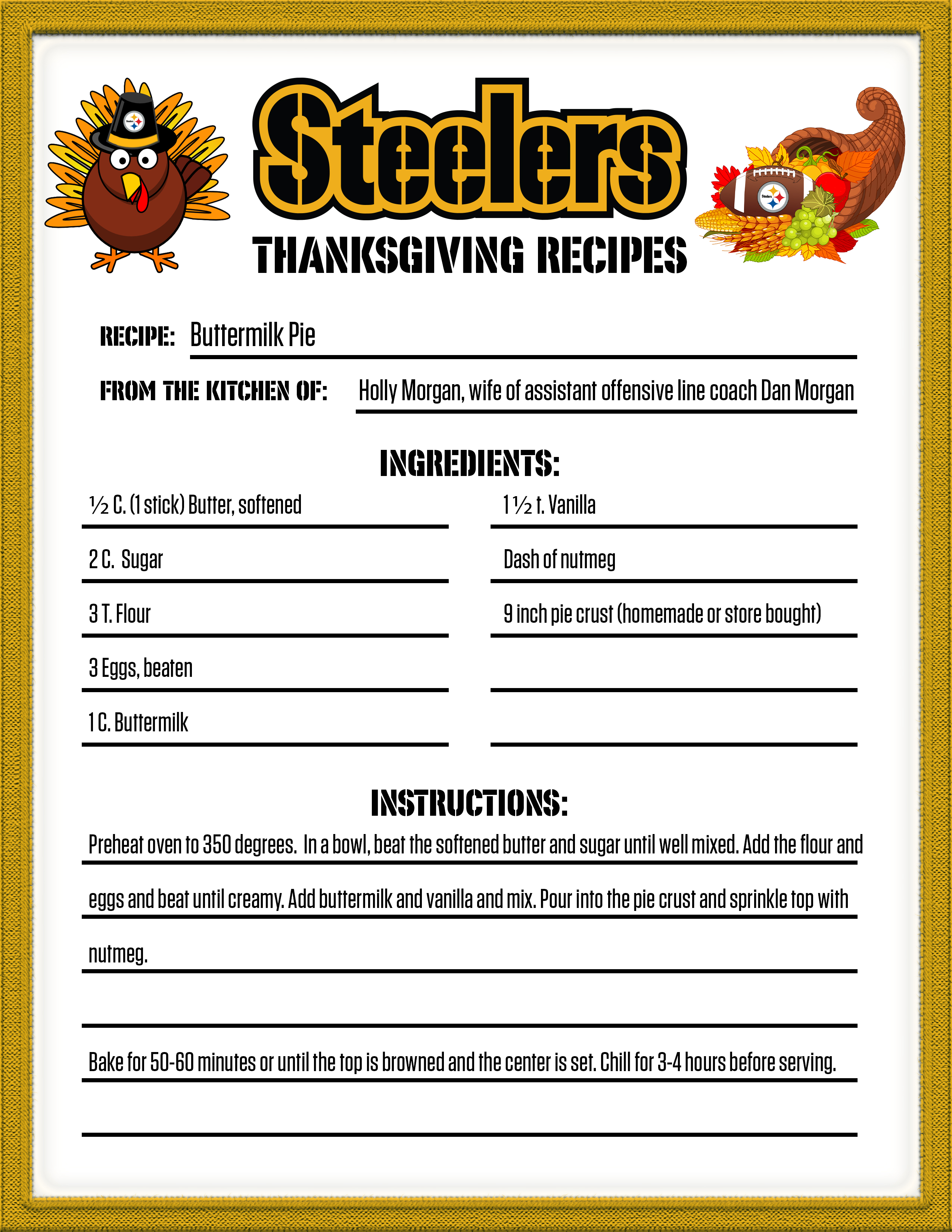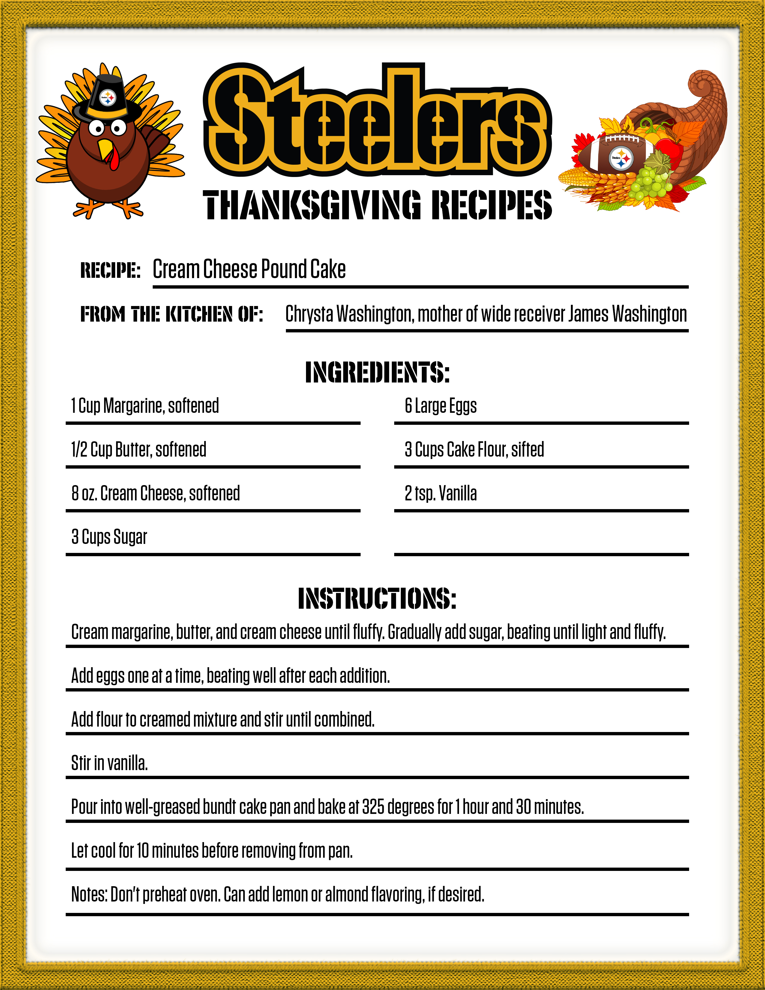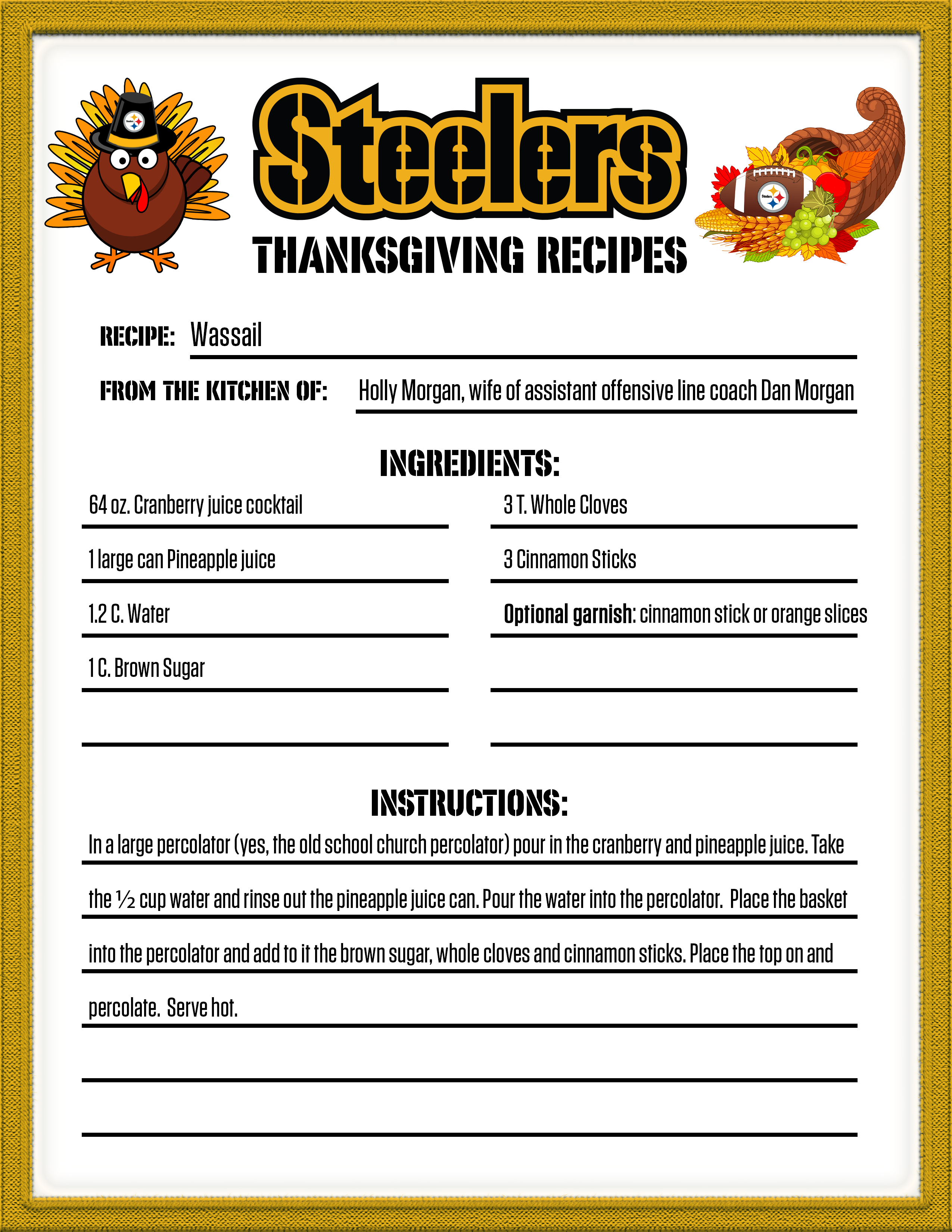 If you are looking for something new for your Thanksgiving dinner, check out one of the recipes from the Steelers' family.